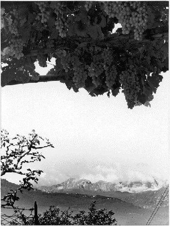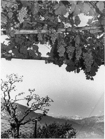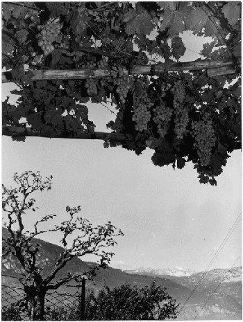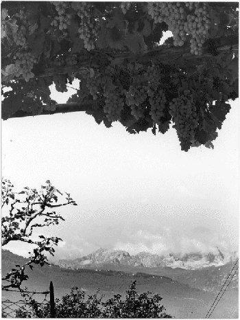 F.lli Pedrotti (1929 - 1979)Trento / Località Novaline / Vite carica di grappoli sullo sfondo del Gruppo del Brenta