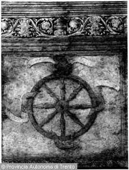 F.lli Pedrotti (1929 - 1979)Trento / Palazzo Geremia / Particolare degli affreschi della facciata raffigurante la ruota...