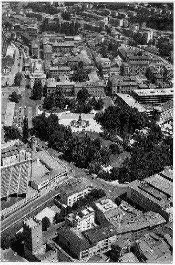 F.lli Pedrotti (1929 - 1979)Trento / Piazza Dante e chiesa di S. Lorenzo / Ripresa aerea