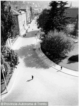 F.lli Pedrotti (1929 - 1979)Trento / Piazza Adamo d'Arogno / Scorcio sulle scale d'accesso a via Garibaldi e sulla sede...