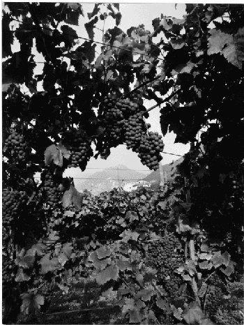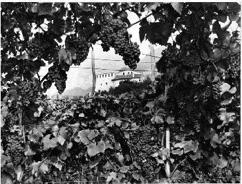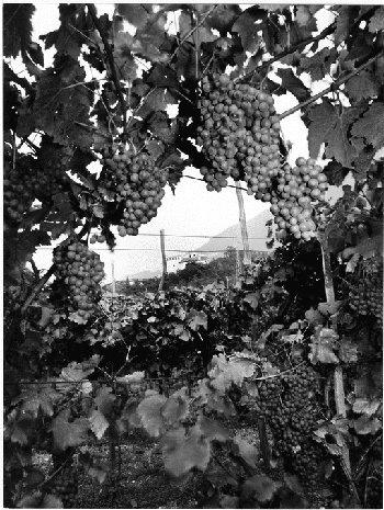 Volano / Viti cariche di grappoli sullo sfondo di Castel Pietra