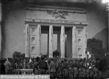 Bolzano, monumento alla vittoria, cerimonia della posa della prima pietra alla presenza del re...
