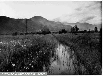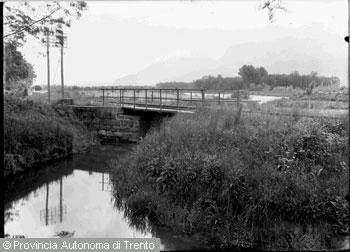 Canale di bonifica alla confluenza col fiume Adige attraversato dalla ferrovia del Brennero
