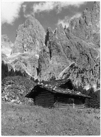 F.lli Pedrotti (1929 - 1979)Dolomiti / Pale di S. Martino / Due baite sullo sfondo della Pala di San Martino e dei Campanili del
