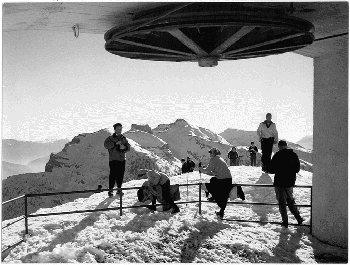 F.lli Pedrotti (1929 - 1979)Dolomiti / Sciatori alla stazione di arrivo di un impianto di risalita