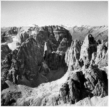 F.lli Pedrotti (1929 - 1979)Dolomiti di Brenta / Cima Sella, Bocca di Tuckett e Cima Brenta / Ripresa aerea verso est