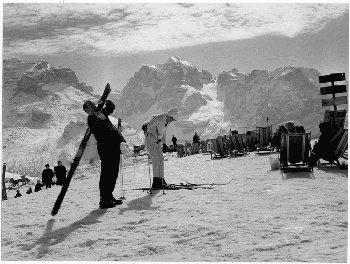 F.lli Pedrotti (1929 - 1979)Dolomiti di Brenta / Monte Spinale / Turisti prendono il sole sulla terrazza innevata del rifugio Sp