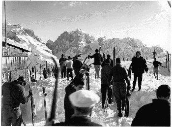 F.lli Pedrotti (1929 - 1979)Dolomiti di Brenta / Monte Spinale / Sciatori in sosta sulla terrazza del rifugio Spinale
