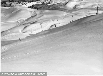 F.lli Pedrotti (1929 - 1979)Dolomiti di Brenta / Passo Grostè, funivia in funzione sui campi innevati nei pressi del...