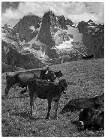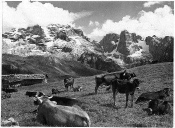 F.lli Pedrotti (1929 - 1979)Dolomiti di Brenta / Mucche al pascolo sul Monte Spinale sullo sfondo del Brenta